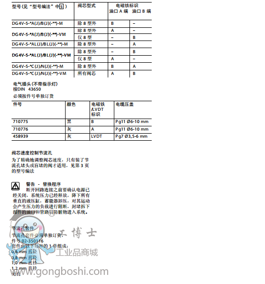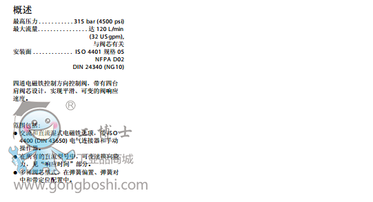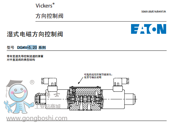 威格士vickers方向控制閥:濕式電磁方向控制閥DG4V-5, 20 系列 |