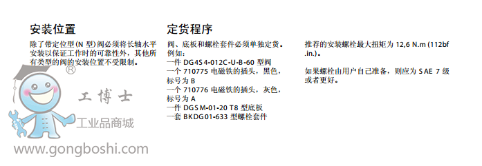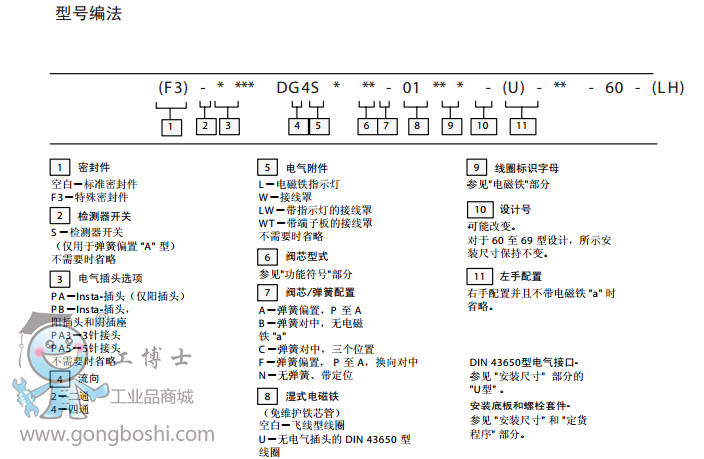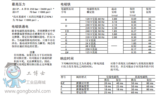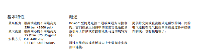 威格士vickers方向控制閥DG4S*-01-60, 濕式電磁方向控制閥 |