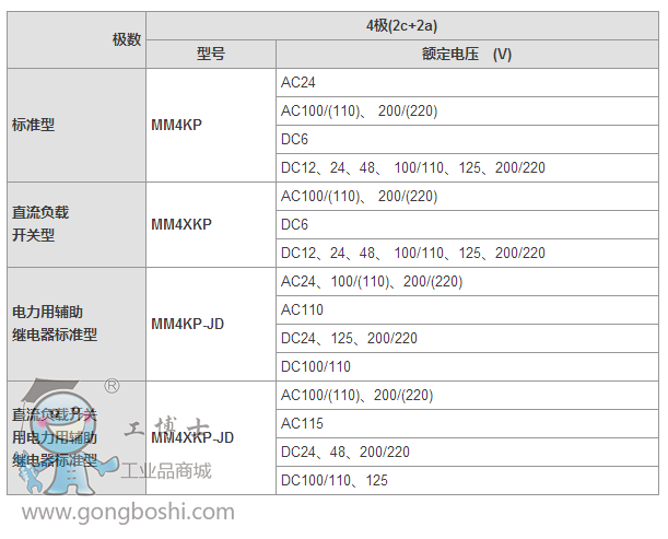 具備電力用輔助繼電器(JEC-174D)標準產品。