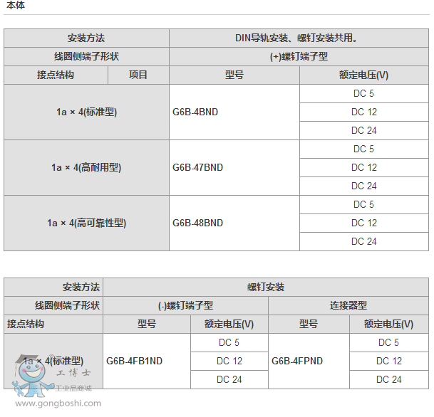 歐姆龍終端繼電器:G6B-4□□ND