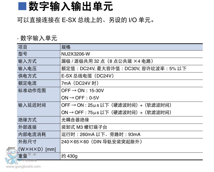富士PLC數字輸入單元:NU2X3206-W