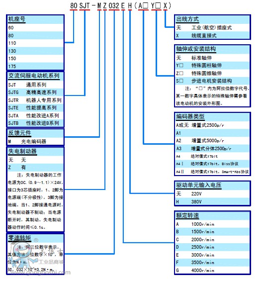 我公司研發(fā)生產(chǎn)的系列伺服電機(jī)為永磁交流伺服電機(jī),采用高性能稀土永磁材料,功率密度高,過(guò)載能力強(qiáng),反電勢(shì)正弦性好,低速特性好;支持220V和380V交流伺服驅(qū)動(dòng),電機(jī)的配件部分支持剎車、油封,電機(jī)編碼器配增量式或絕對(duì)式;電機(jī)座規(guī)格有:40mm、60mm、80mm、110mm、130mm、175mm。電機(jī)型號(hào)共分40SJTA系列、60SJTA系列、80SJTB系列、80SJTA系列、110SJT系列、130SJT系列、175SJT系列通用型交流伺服電機(jī)。