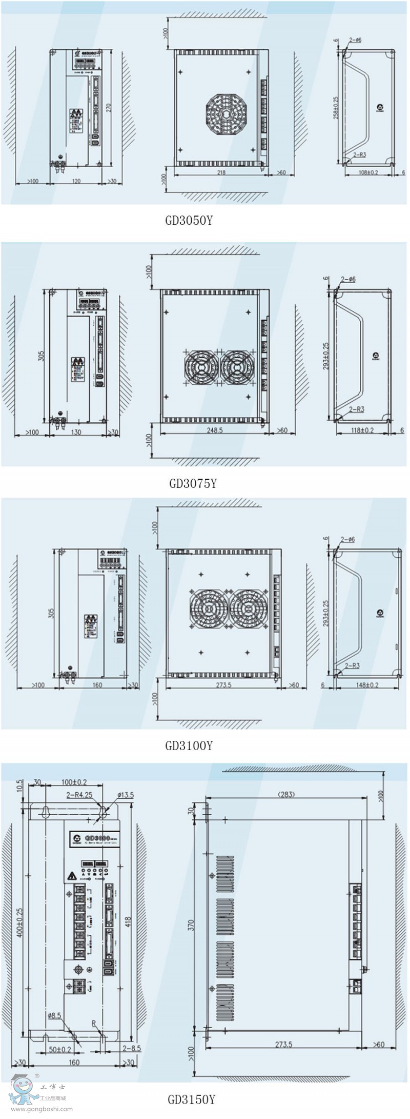 ●GD3000Y系列主軸伺服驅(qū)動單元采用國際先進(jìn)的專業(yè)電機(jī)控制芯片,處理