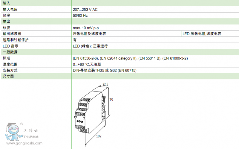 整流電源的輸入電壓頻率被設計為50/60HZ。能有限的阻止電壓尖峰從主電源側傳遞到輸出端,減=少對外圍設備的干擾。