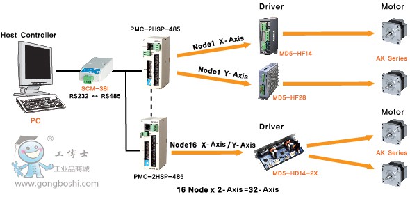 *支持RS485通信(Modbus RTU),*大可實現16臺,32軸控制
