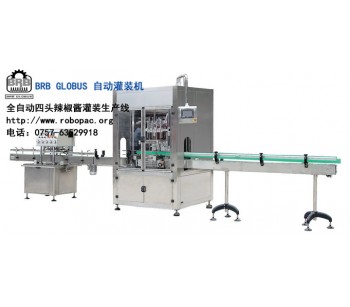 佛山羅博派克BRB-104全自動四頭灌裝旋蓋貼標生產線,辣椒醬灌裝機主要組成部分:4頭壓力式灌裝機 +6輪搓蓋機 + 全自動圓瓶貼標機(可配置鋁箔封口機)。設備主要用于解決食品、油脂、醬料企業自動化生產問題,整灌裝精度高、生產效率高、成品合格率高,是企業自動化生產的理想選擇。