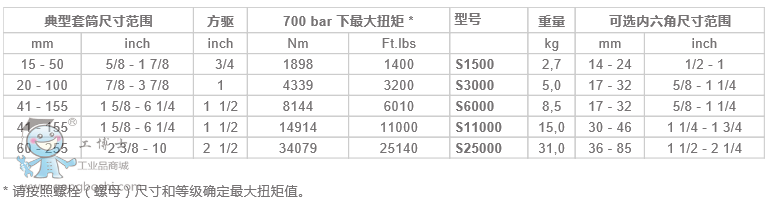 Enerpac恩派克 S1500/S3000/S6000/S11000/S25000鋼制方驅液壓扳手