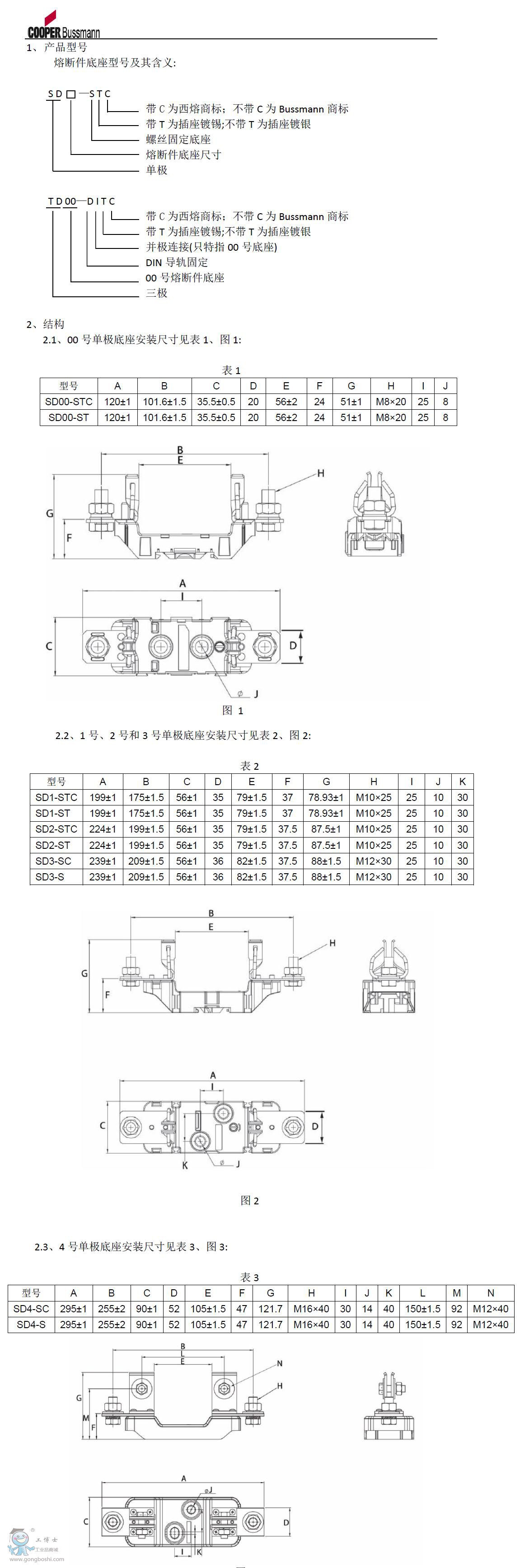 Bussmann庫伯西熔熔斷器底座SD00-STC,SD1-STC,SD2-STC,SD3-SC