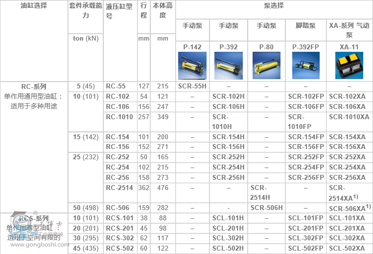 Enerpac恩派克 SCR-55H/SCR-254H/SCP-606H單作用液壓缸-泵套件