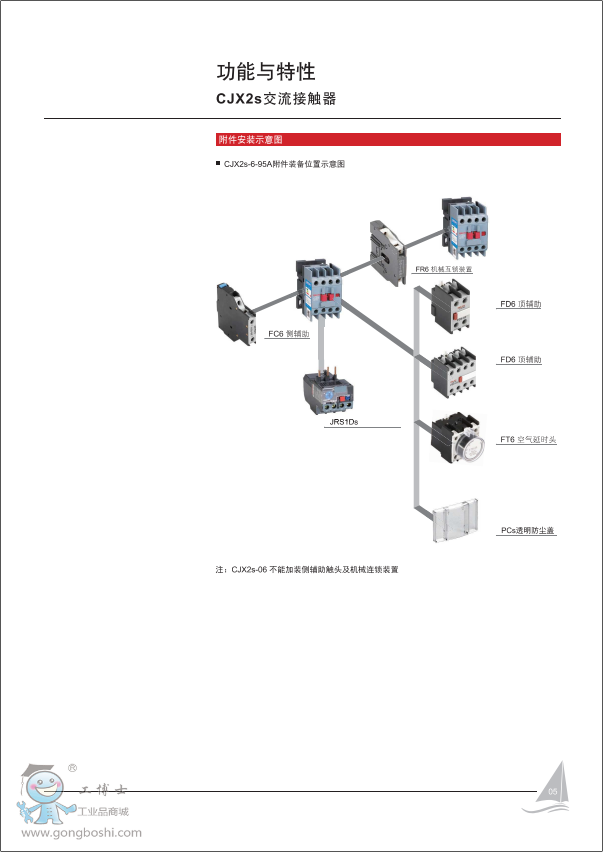 附件:PCs透明防塵蓋、FD6頂輔助觸頭組、FC6側(cè)輔助觸頭、FT6空氣延時頭、FR6機械連鎖、FS浪涌抑制器(不占任何的安裝空間,能有效的保護接觸器的線圈)