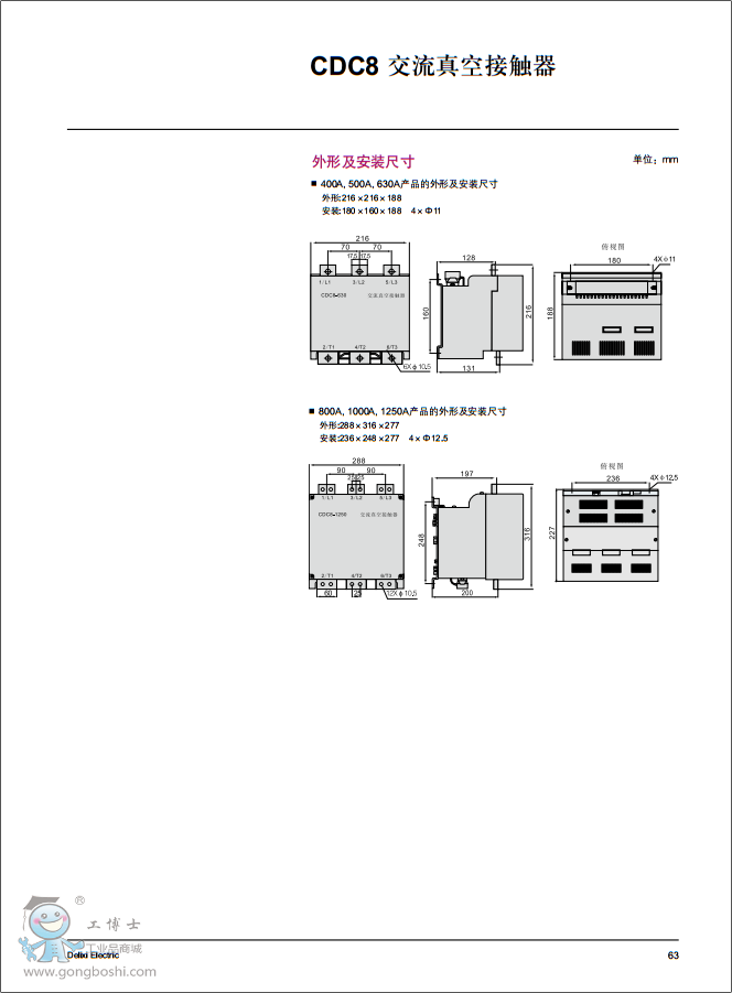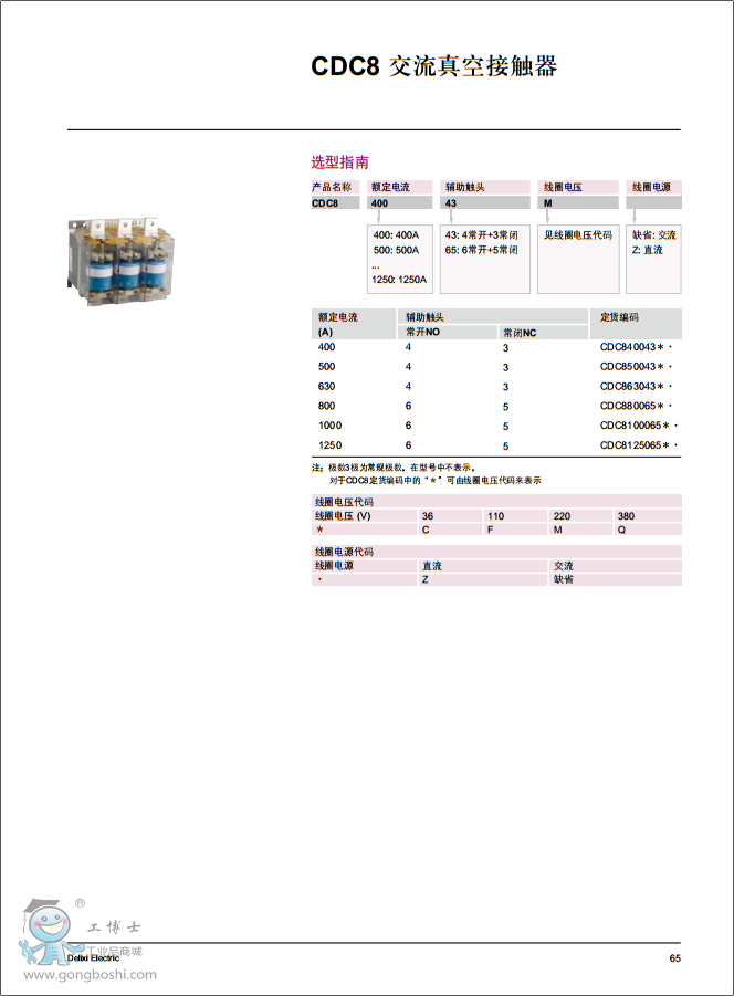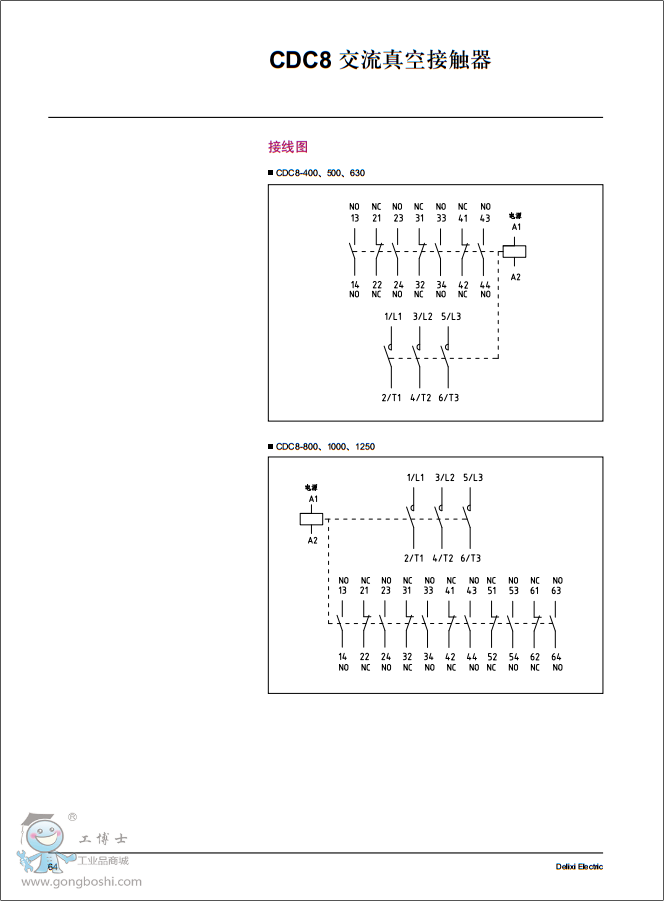 Delixi德力西CDC8系列CDC8-400-43 AC220V交流真空接觸器