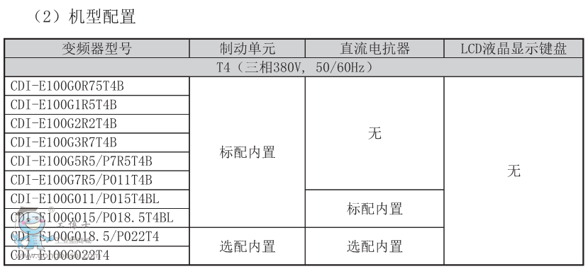 15kW及以下標配內置制動單元,18.5kW-22kW選配內置制動單元,11kW,15kW標配直流電抗器,18.5kW-22kW可選配。