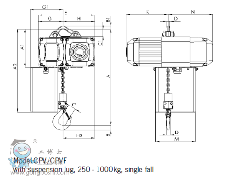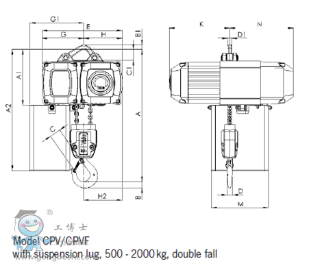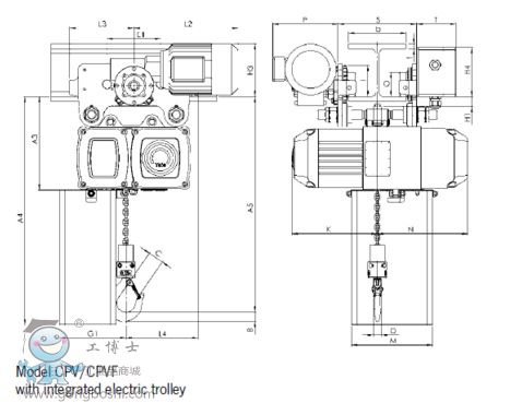 V-Star 電動環鏈葫蘆吊柄或集成小車式懸掛式