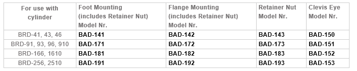 BAD-Series, Attachments for BRD-Series Cylinders