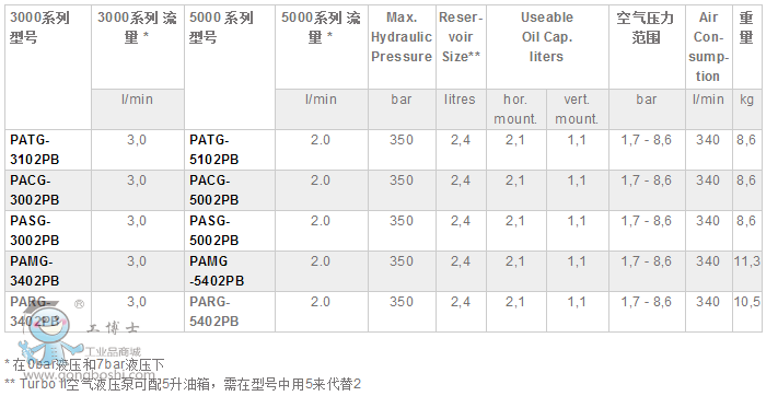 ENERPAC恩派克PA-系列,第二代渦輪空氣液壓泵