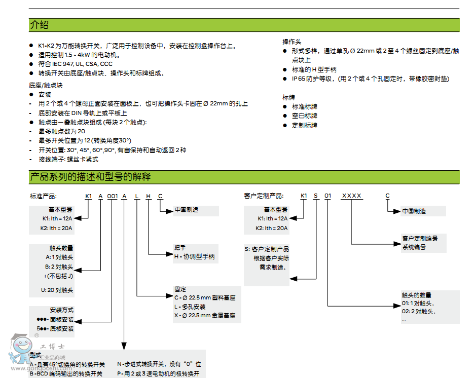 l轉換開關由底座/觸點塊、操作頭和標牌組成。