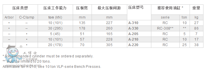 A-系列,C形夾、臺式壓床