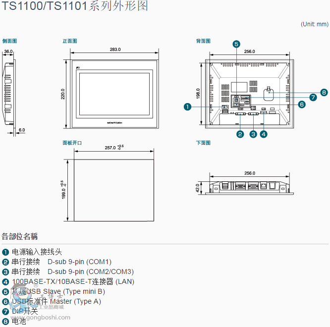 富士觸摸屏TS1100i人機界面 尺寸10.2英寸 顯示分配率800x480 |