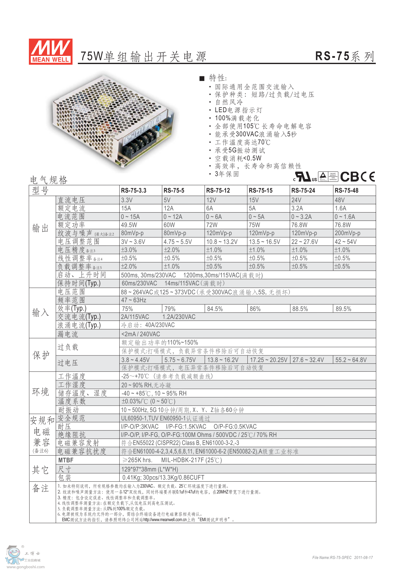 臺灣明緯開關電源 RS-75-5