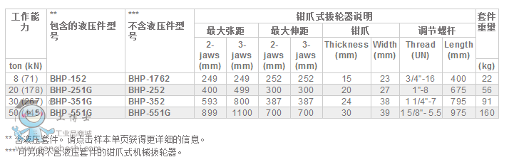警示: 當使用雙重交叉(2爪)拔輪器或軸承與支柱相連的拔輪器時,工作能力不要超出的50%