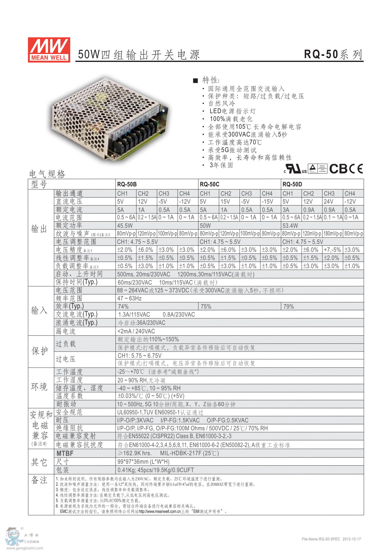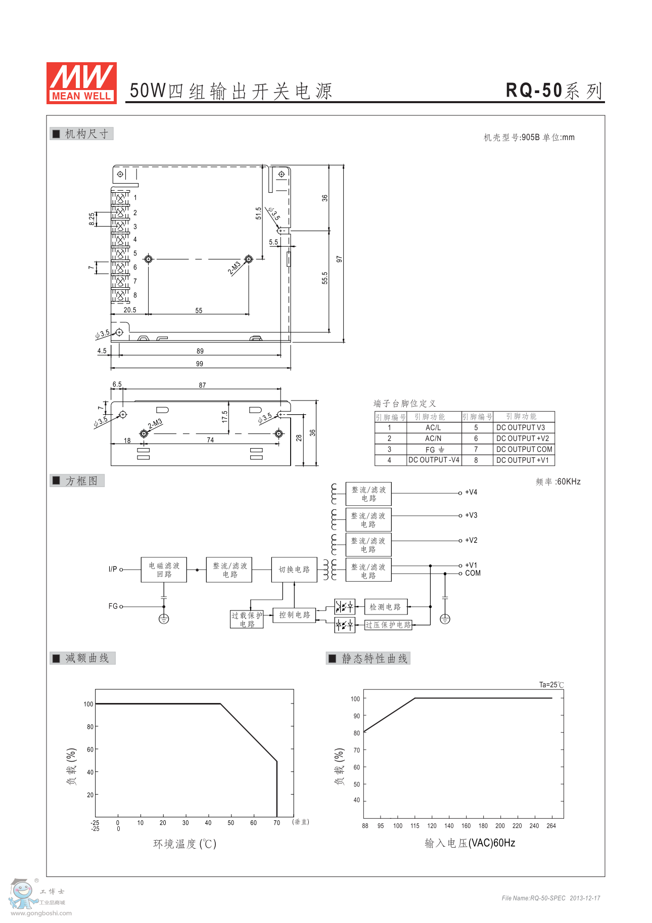 明緯RQ-50B 50W四組輸出開關電源 G3系列