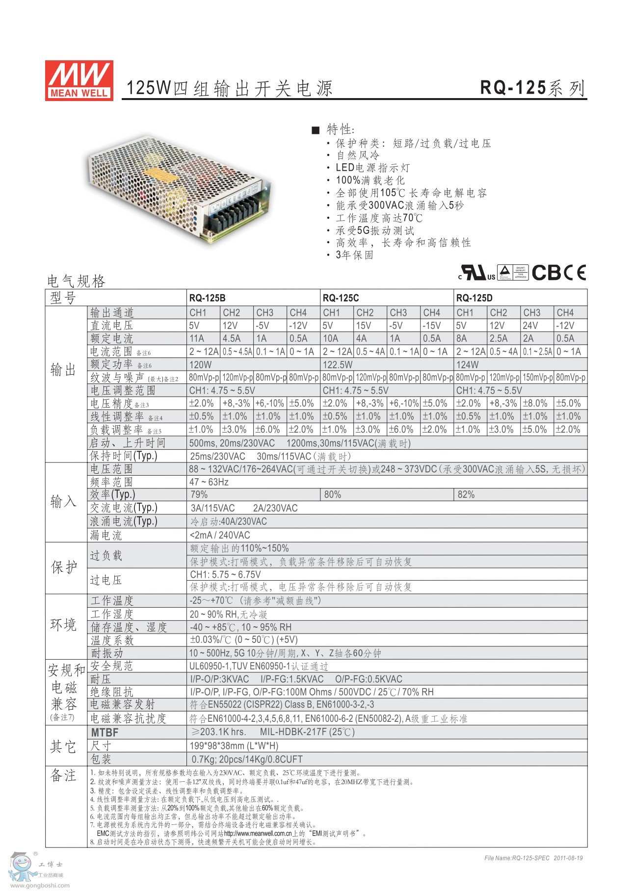 明緯RQ-125B 125W四組輸出開關電源 G3系列