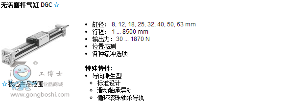 費(fèi)斯托FESTO機(jī)械耦合無桿氣缸-無活塞桿氣缸DGC
