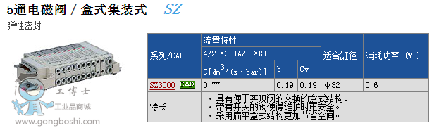 SMC 5通電磁閥/盒式集裝式-SZ3000