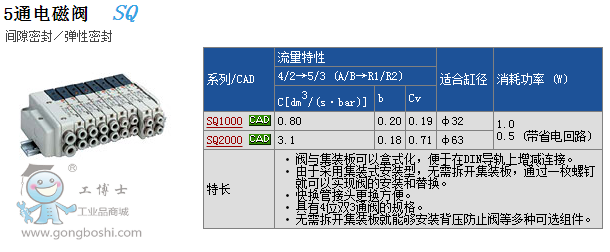 SMC 5通電磁閥-SQ1000,SQ2000