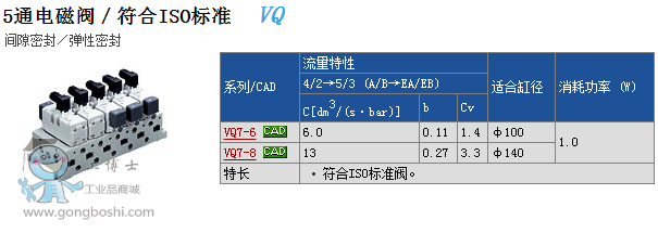 SMC 5通電磁閥-VQ7-6,VQ7-8