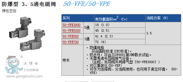SMC 防爆型3、5通電磁閥-50-VFE3000,50-VFE5000,50-VFE500