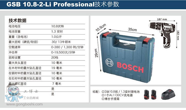 博世(Bosch)GSB 10.8-2-LI 鋰電充電式?jīng)_擊鉆