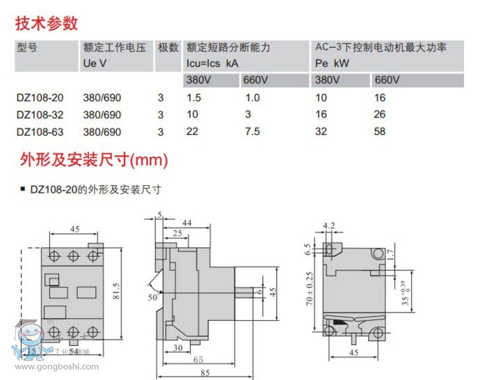 德力西電機保護器DZ108-20/11 電動機保護塑殼斷路器