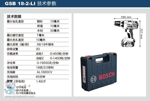 • 商品名稱:博世GSB 18-2-Li