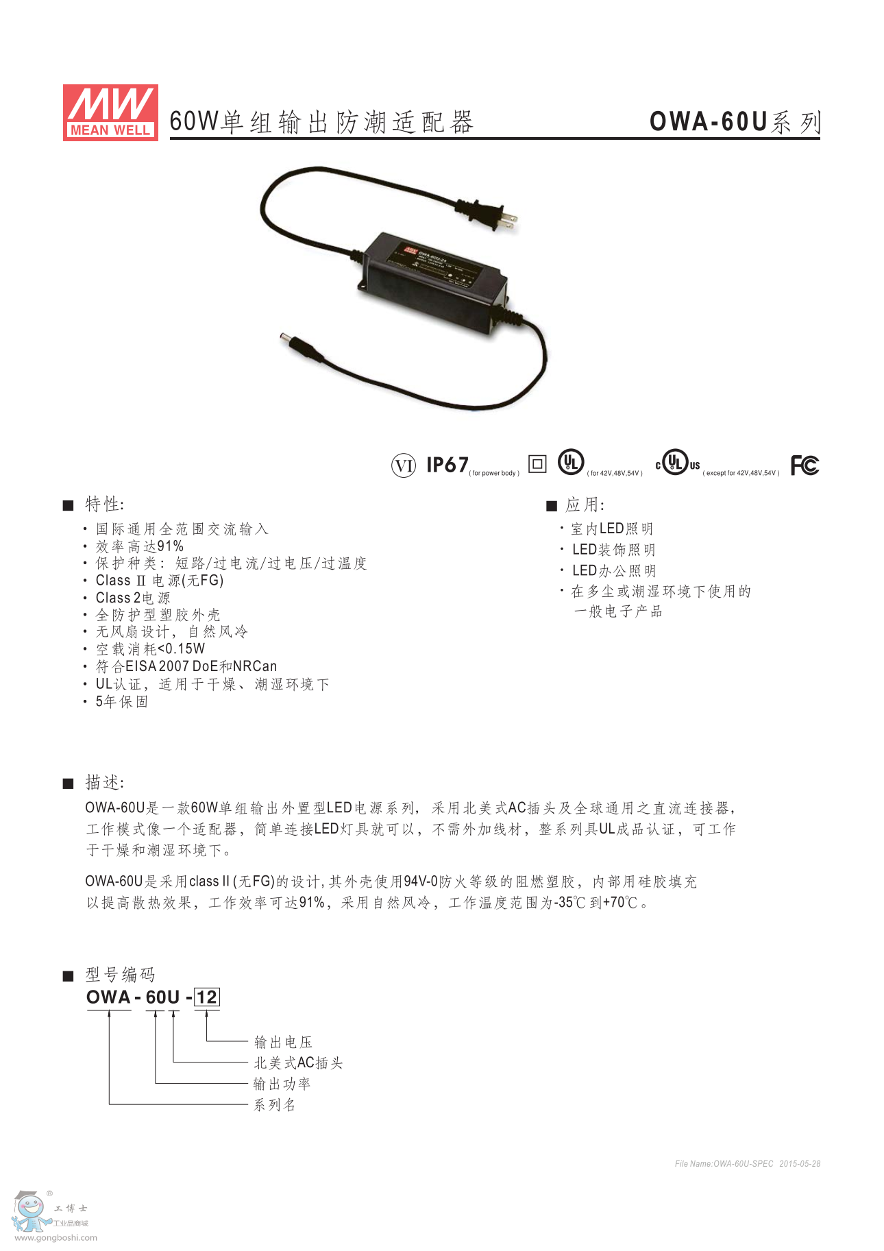 E型: 符合EU ErP 及 CoC Version 5 (OWA-120E 僅符合EU ErP) U型: 符合EISA 2007/DoE 及 NRCan