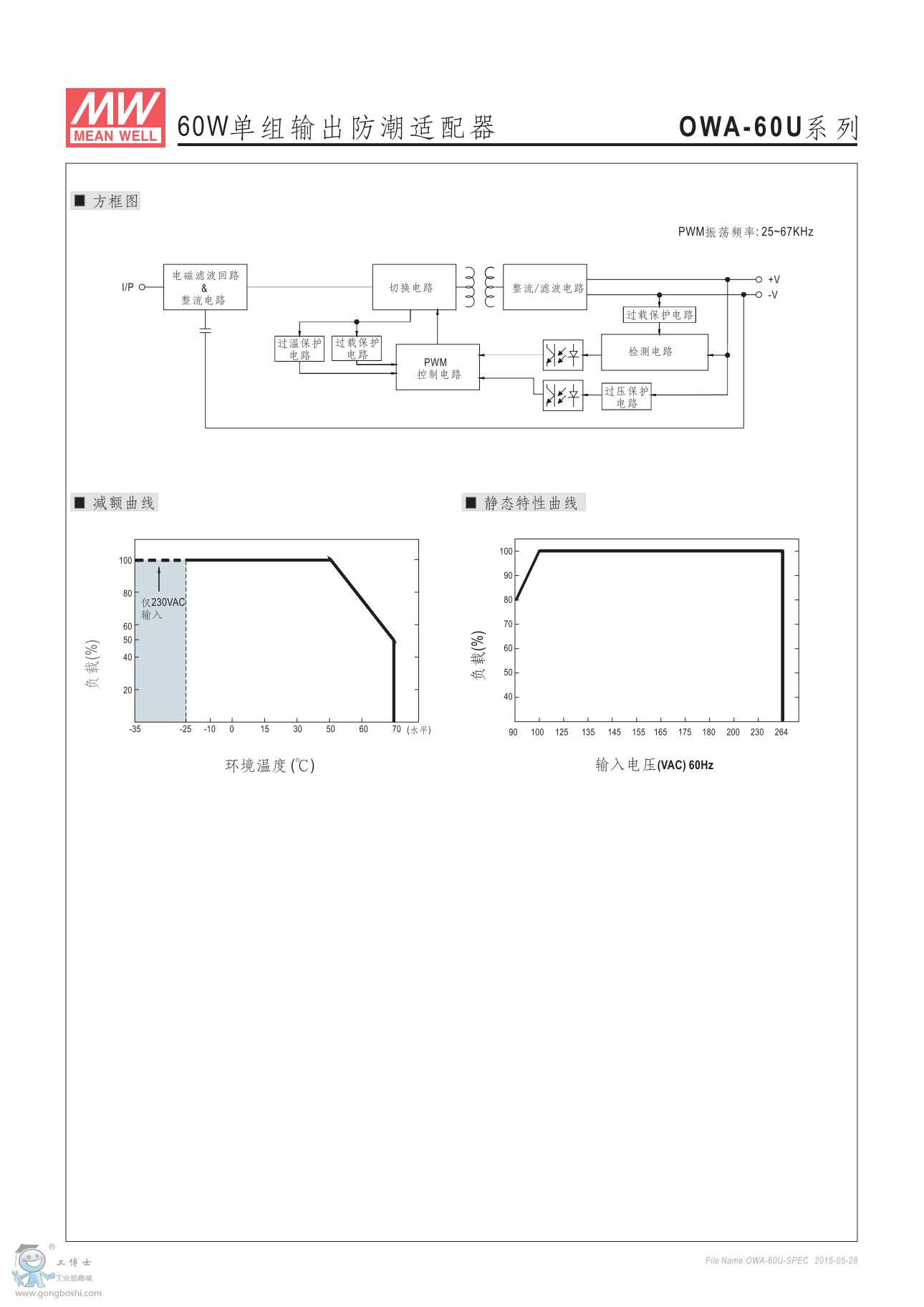 90~264VAC交流輸入(OWA-120E為180~264VAC交流輸入)