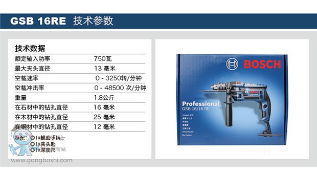 博世(BOSCH)GSB 16RE沖擊鉆紙盒包裝