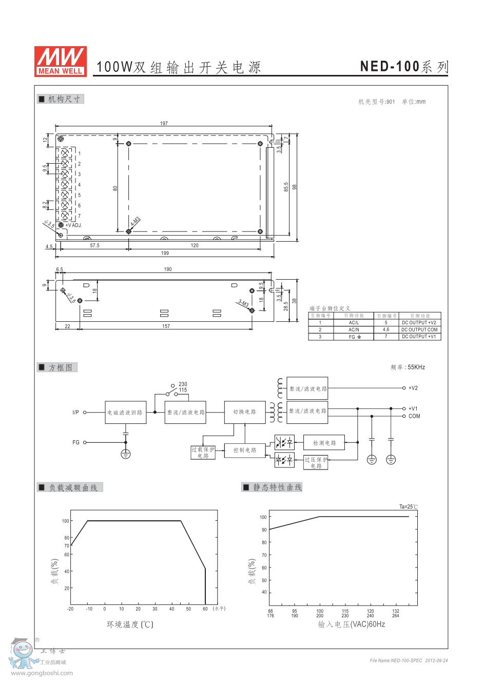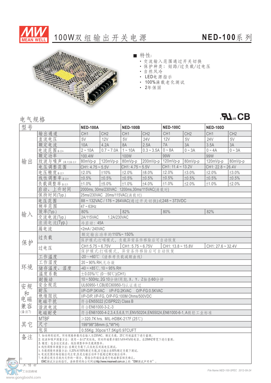 明緯開關電源NED-100A 100W雙組輸出 NE系列
