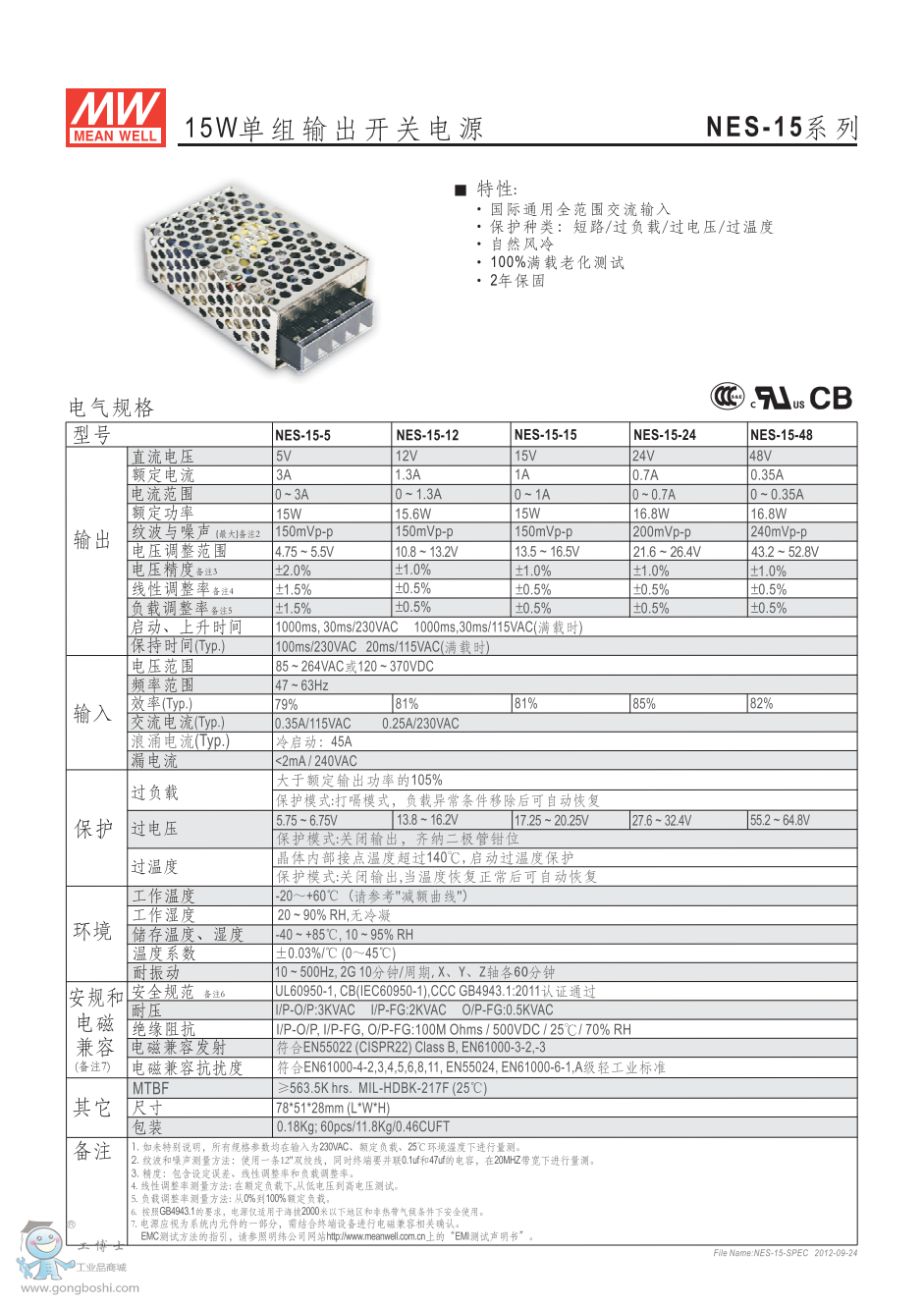 明緯NES-15-5 15W單組輸出開關(guān)電源 NE系列