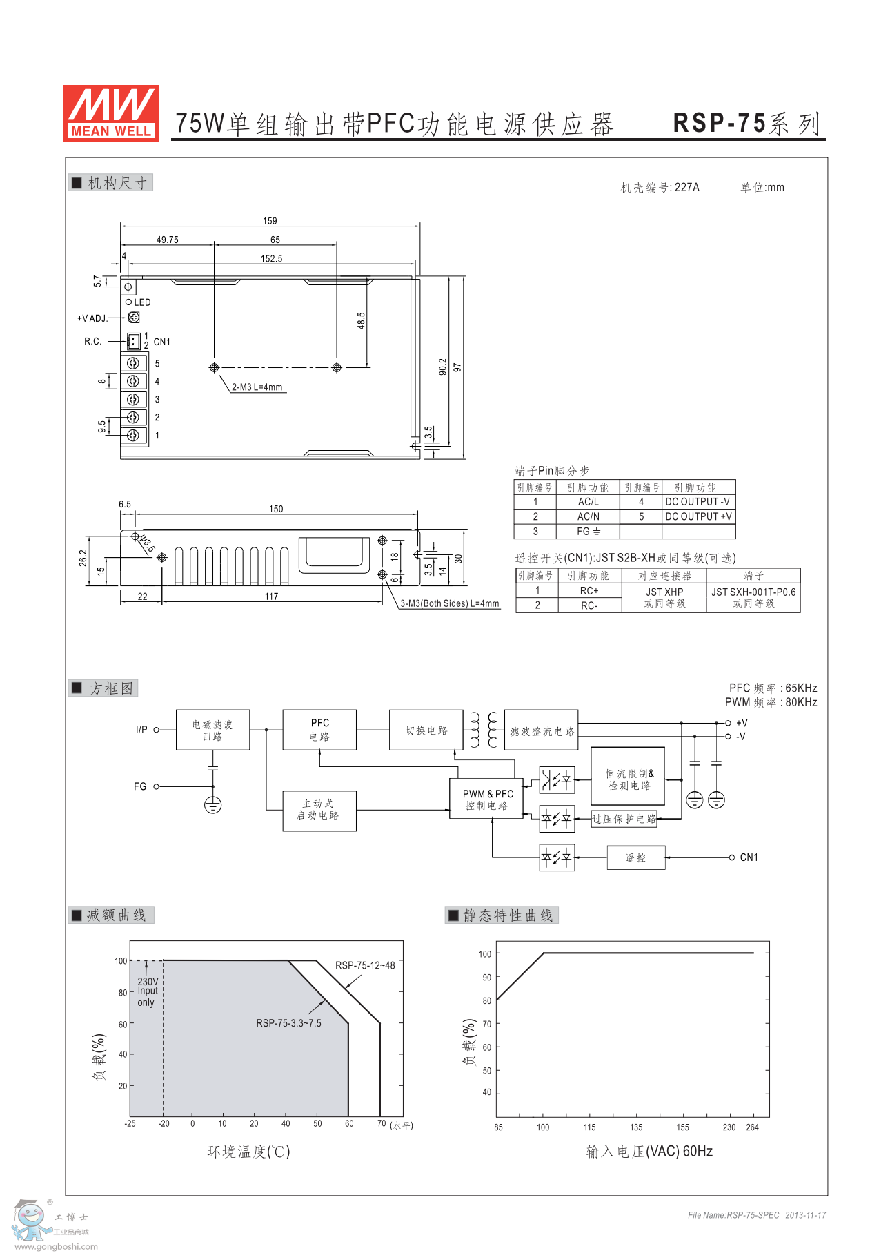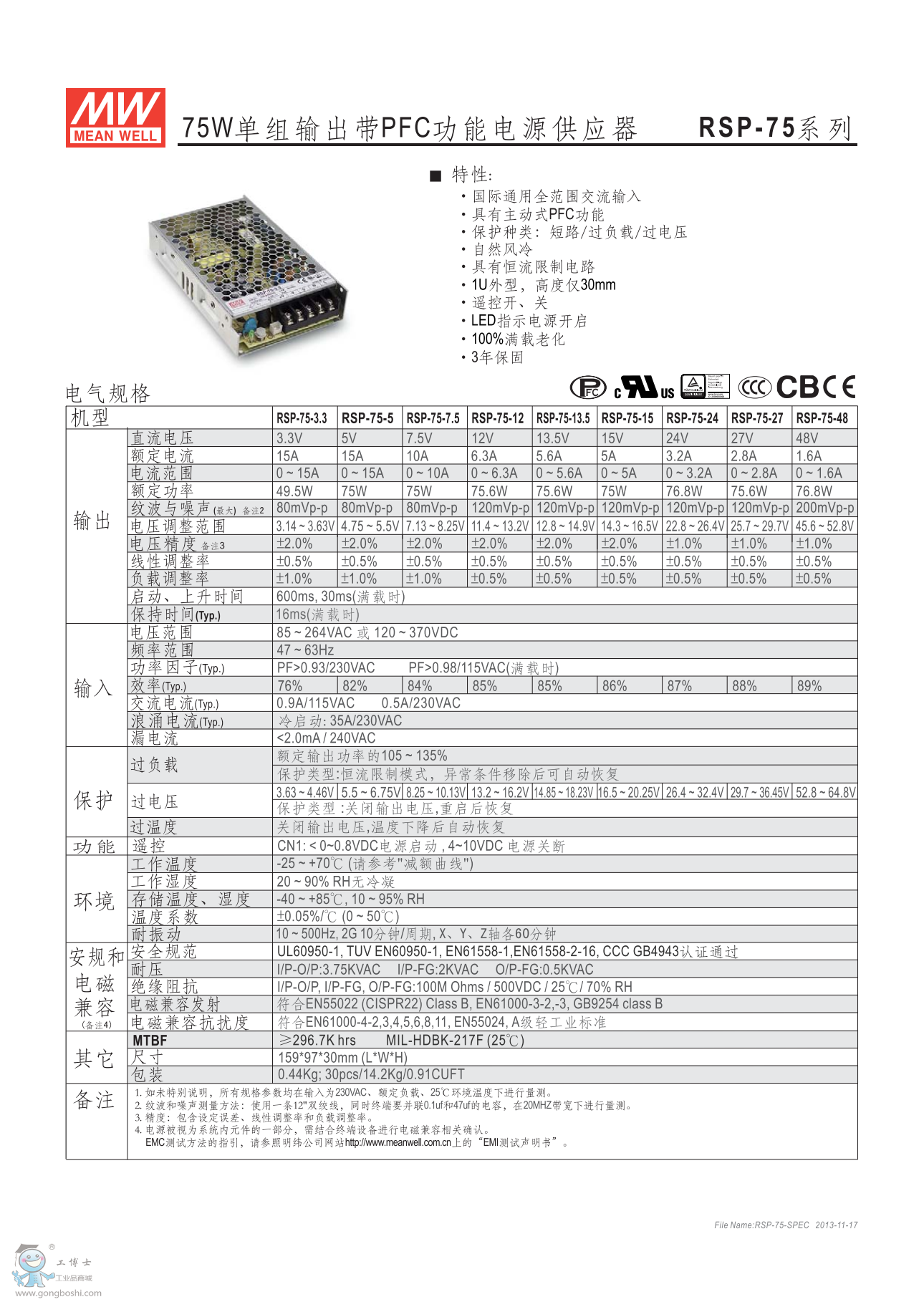 明緯電源RSP-75-12 75W單組輸出帶PFC功能 NE系列