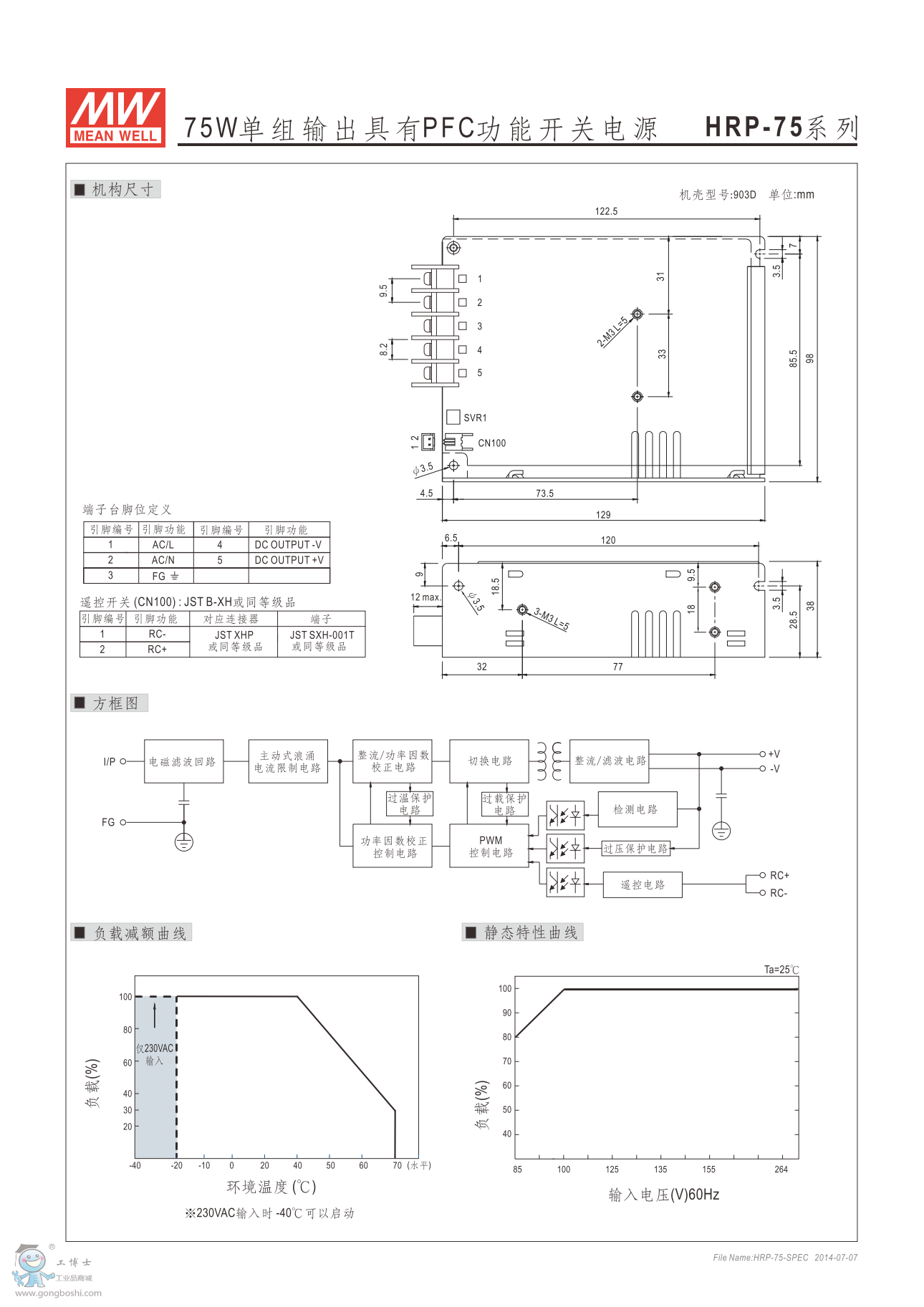 內置機殼型開關電源  G5系列: