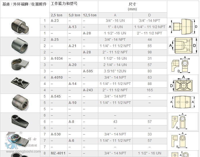 Enerpac恩派克 MS-系列,基座,外環端腳,柱塞附件
