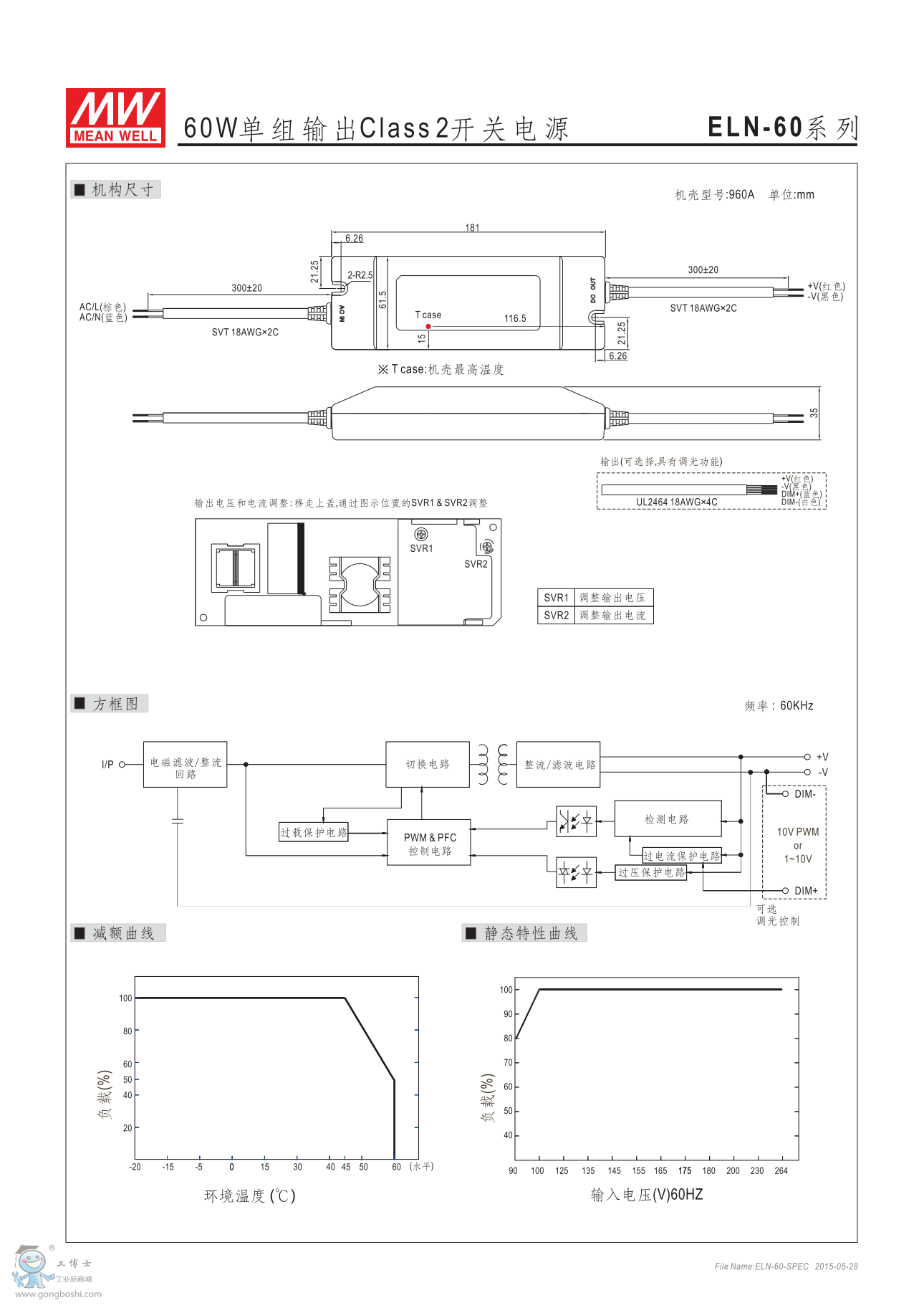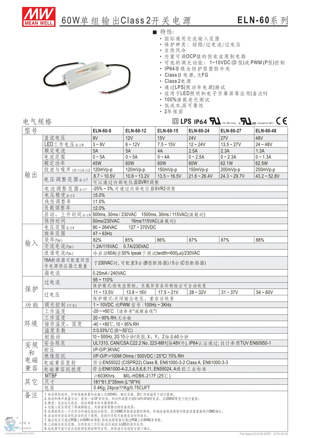 明緯ELN-60-12 60W單組輸出class2 LED開關電源