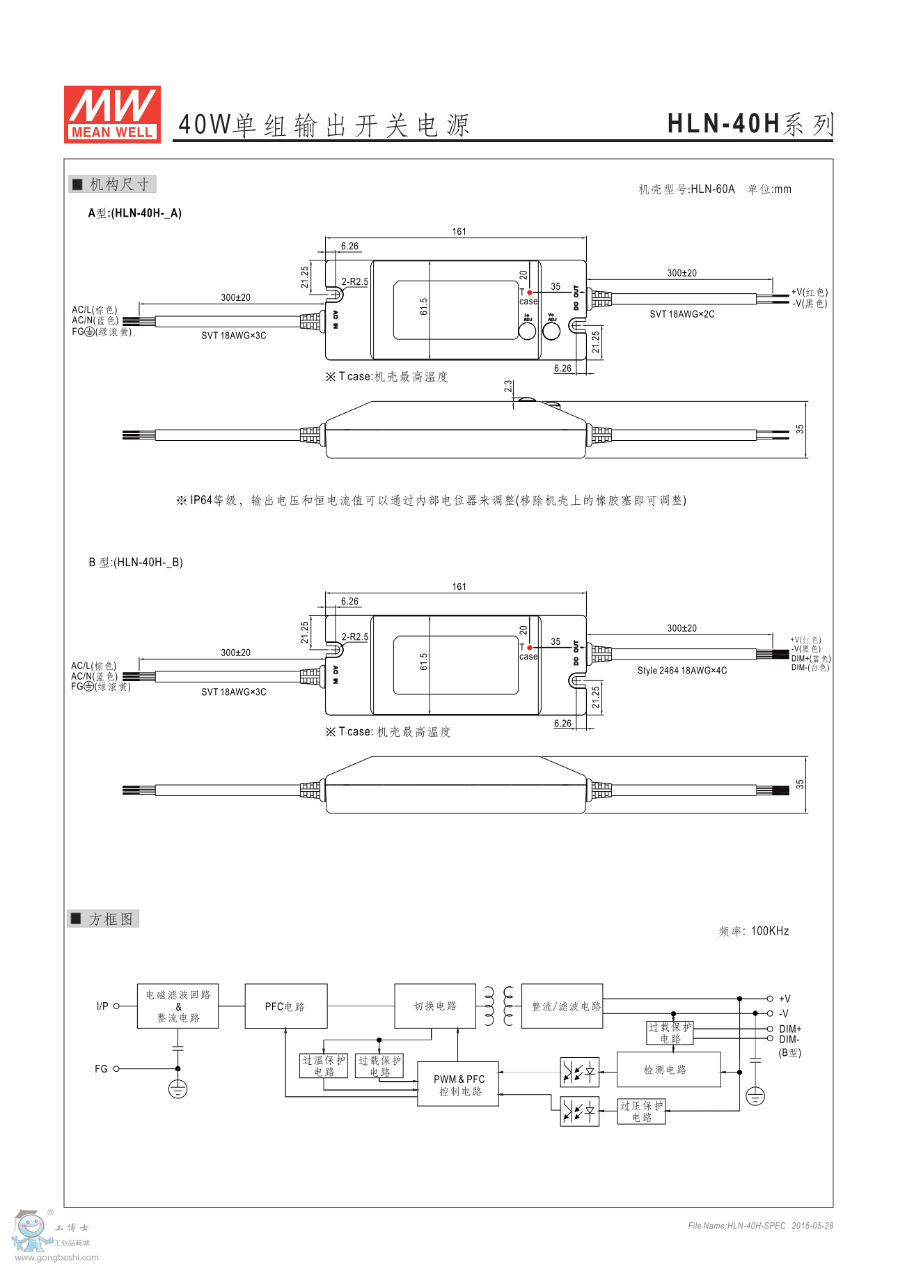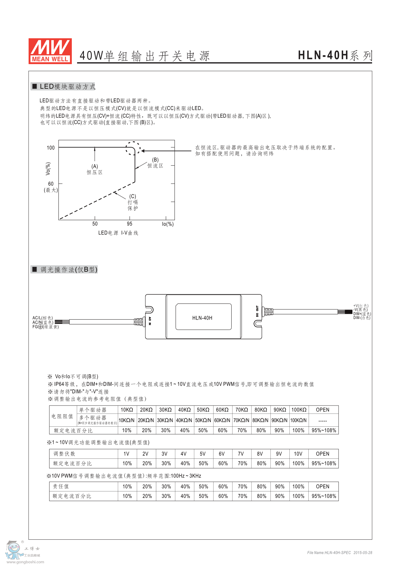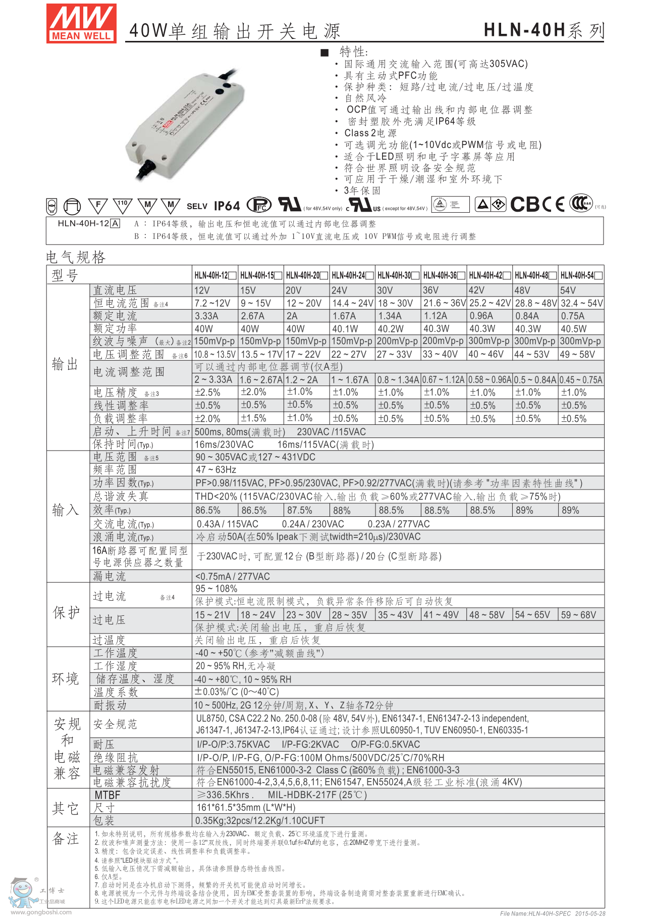 明緯HLN-40H-12 40W單組輸出LED開關電源