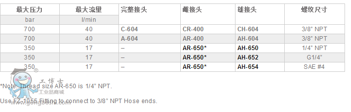 高壓快速接頭推薦用于所有的ENERPAC泵和油缸