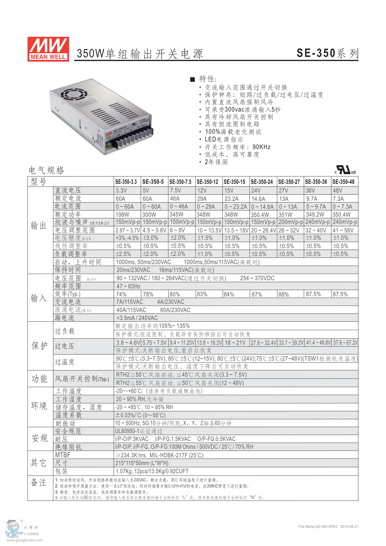 明緯開關電源 SE-350-12 350W 12V 29A 現貨