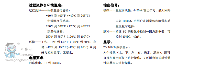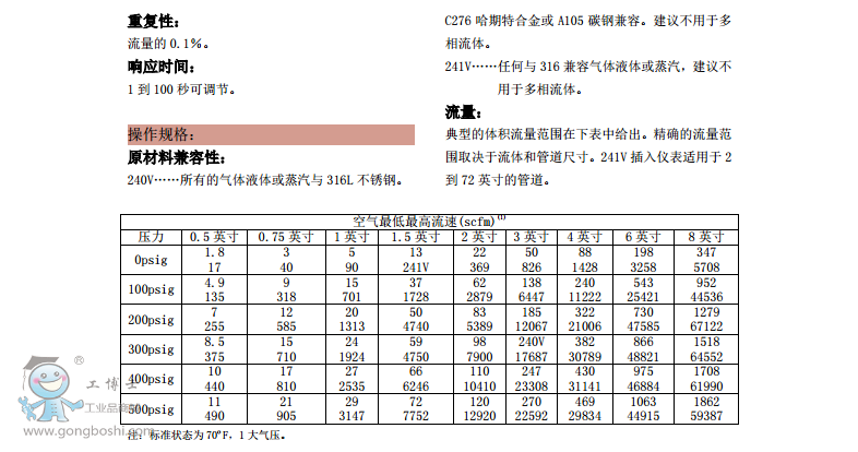 我們的241型號通過過程管道里的單點測量就可以直接讀取質量流量,并輸出質量流量、體積流量、溫度、壓力和密度五個過程變量的模擬/數字信號。 獨特的插入式設計可測管徑范圍為2-72英寸,空氣*大測量范圍為67000 scfm, 飽和蒸汽可測到330,000 pounds/hour。另外,此儀表有高壓版本的質量流量計,*高可以承受5000 psig的高壓。 241型號*新研制了可以測量地熱蒸汽應用。 單點測量所有過程變量的能力可以大大提高測量精度,減少了傳統質量流量計所需要的額外線性補償所帶來的誤差和成本