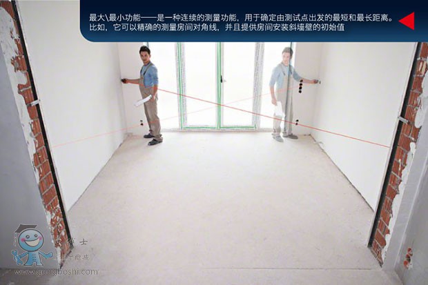 *大*小功能——是一種連續的測量功能,用于確定由測試點出發的*短和*長距離。 比如,它可以精確的測量房間對角線,并且提供房間安裝斜墻壁的初始值