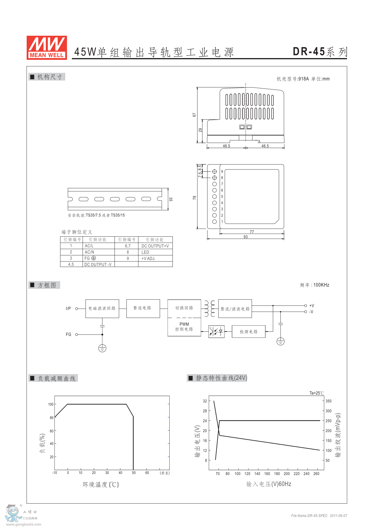 臺灣明緯導軌電源DR-45-12 12V3.5A 供應 |