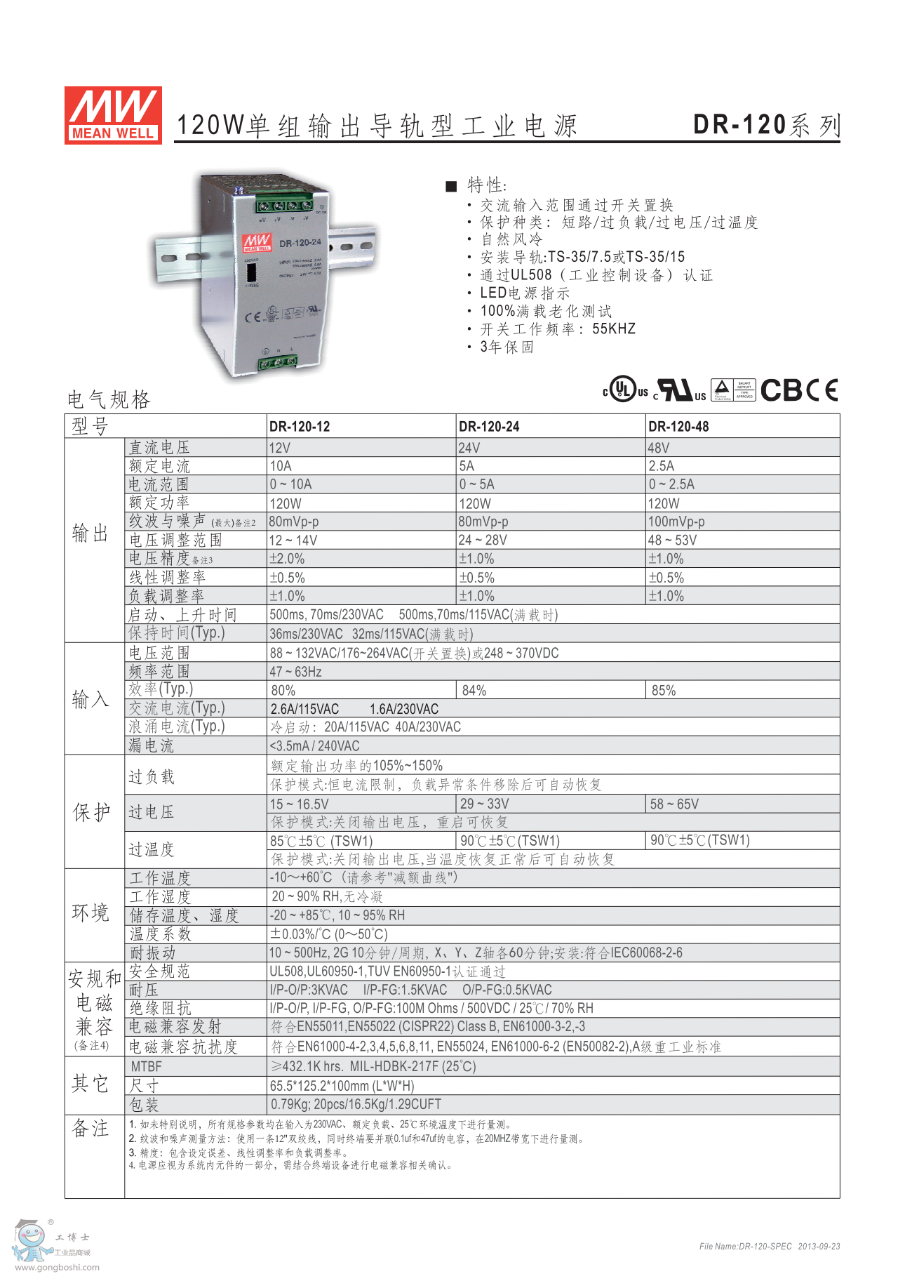 臺灣明緯導軌電源DR-120-12 12V10A 供應 |